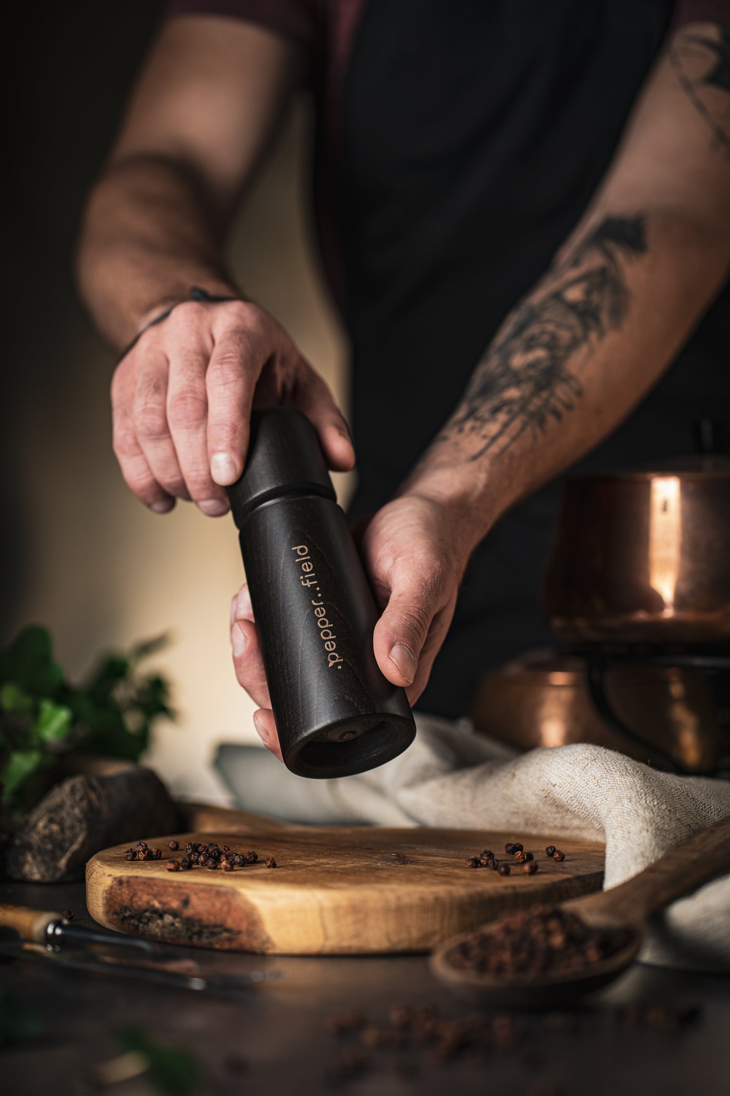 Černý skandinávský mlýnek na pepř (17 cm) + černý pepř 20 g (zdarma)