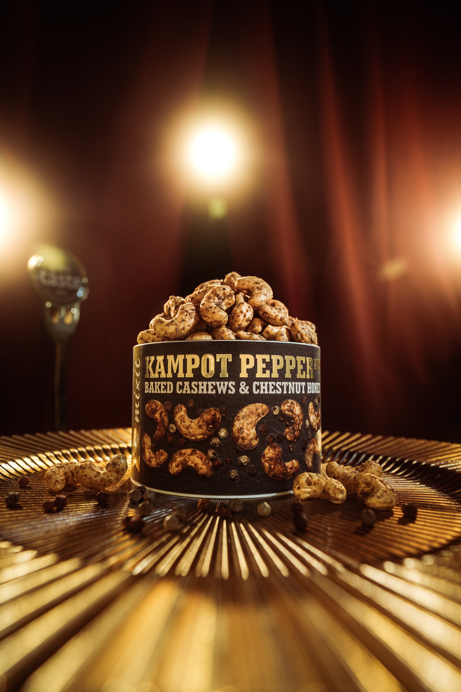 We complemented the flavor of premium cashew nuts roasted in an oven with the sweet caress of rich chestnut honey, and for an extra kick, we added two of our winning Kampot peppers.