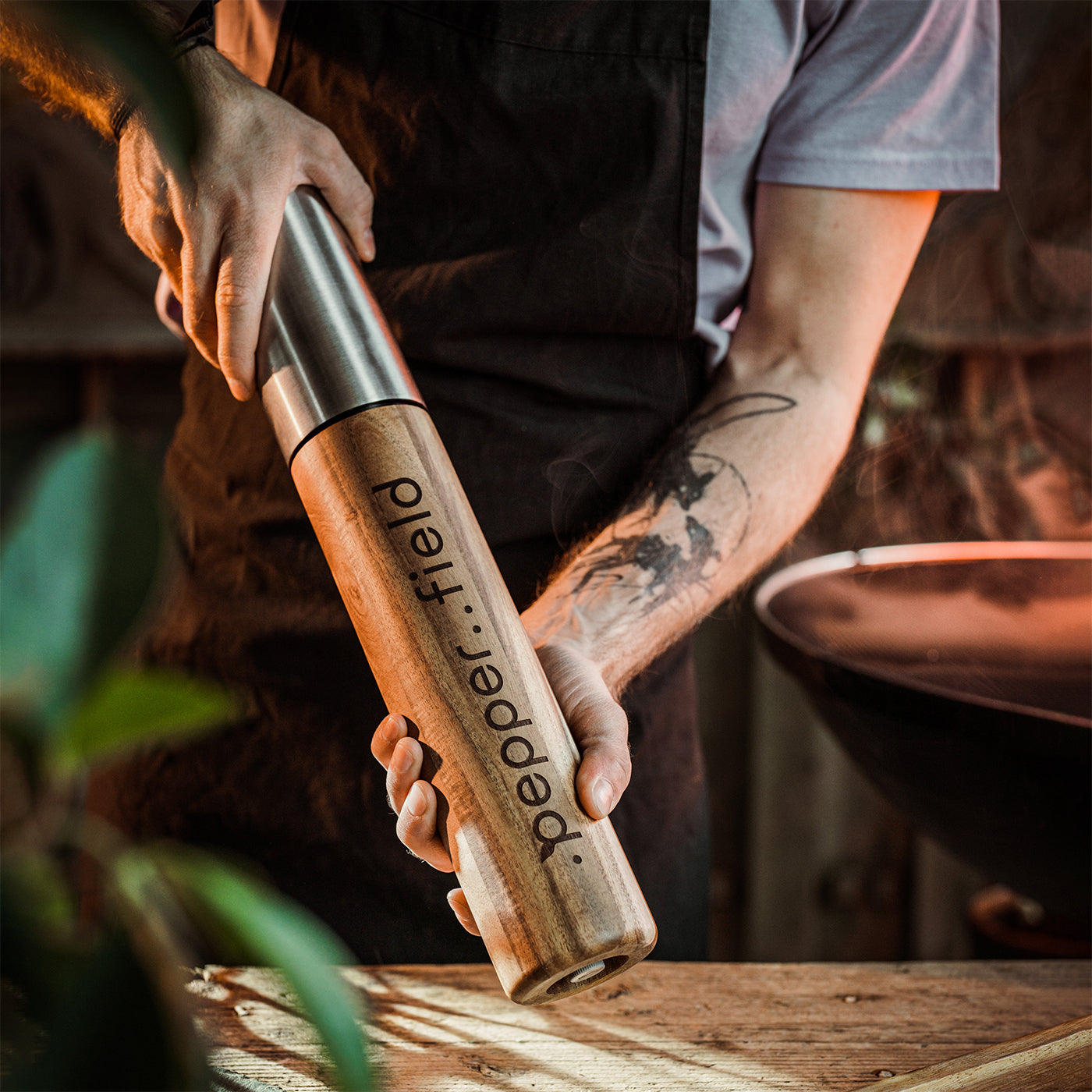 Moulin à poivre naturel scandinave (17 cm) + poivre blanc (20 g gratuit)