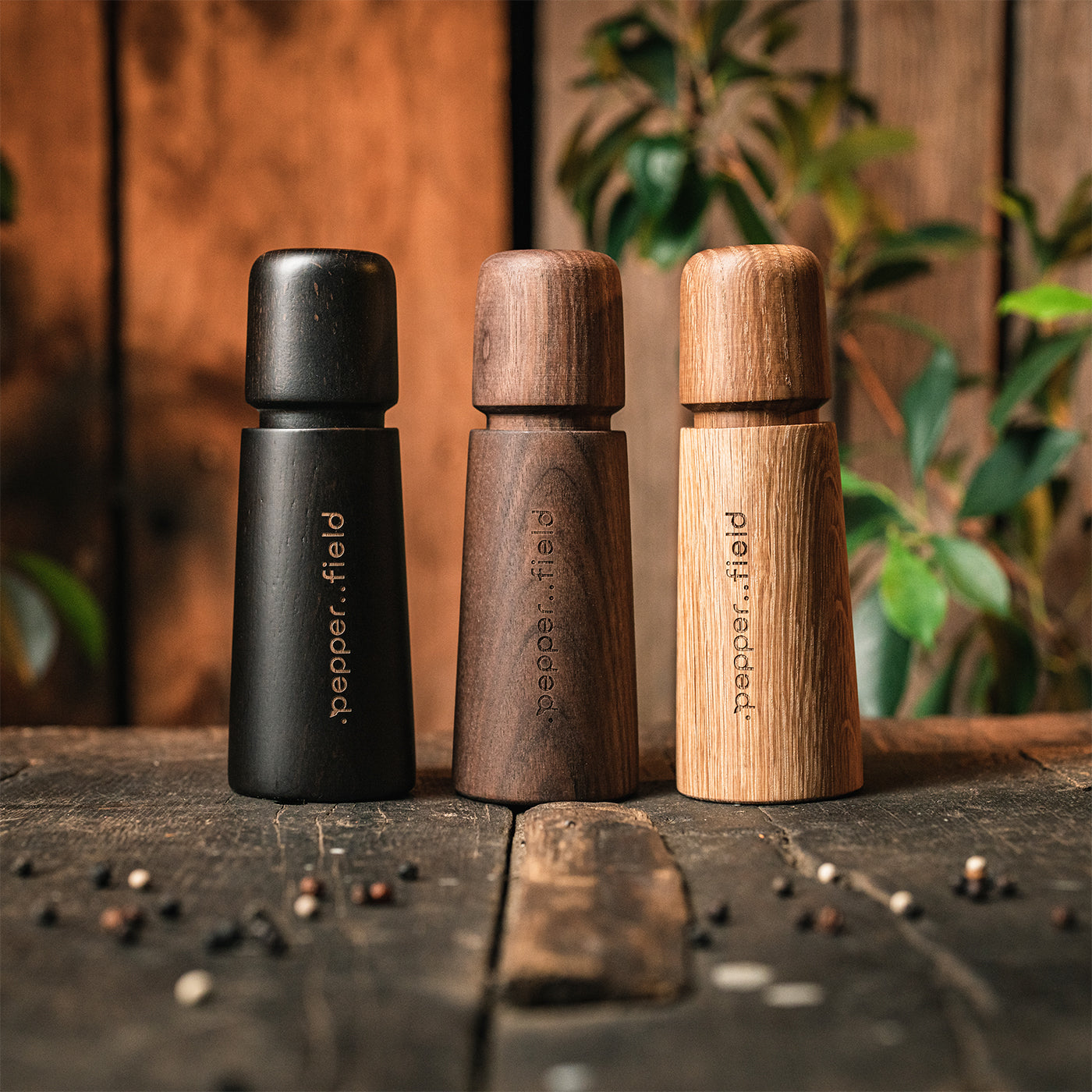 Ensemble premium Dark – moulin tchèque (25 cm) + 3 types de poivre de Kampot dans un pot en verre tchèque (3× 70 g)